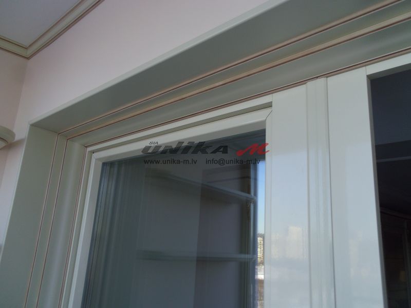 Плинтус изготовлен из МДФ и дополнительно покрыт полуматовой эмалью. Выполненный в тон основной отделки, он органично вписывается в пространство и отлично его дополняет как по стилистике, так и по цвету. Для плинтуса использован бежевый и коричневый цвета, что в сочетании смотрится весьма гармонично и придает лоджии более интересный законченный вид.